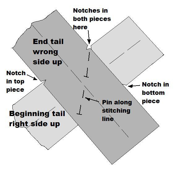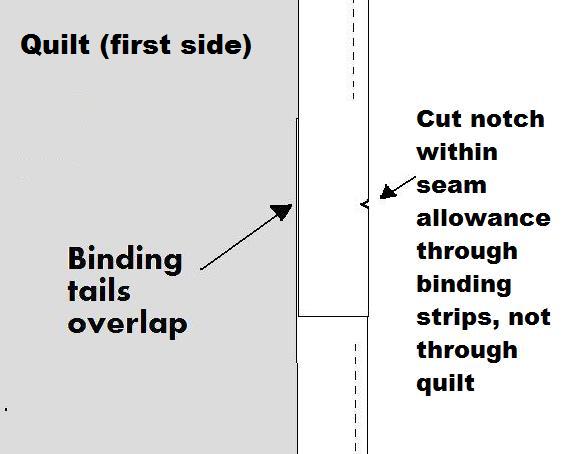 Place ending tail on top of beginning tail along quilt edgeOverlap the unstitched binding tails