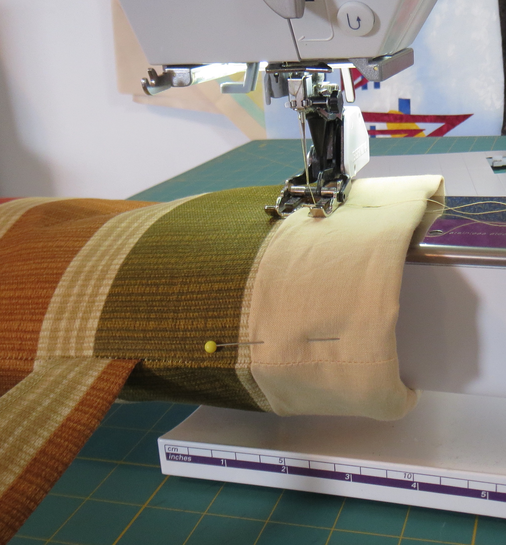 Fold in half and sew along the outer fabric narrow end and all along the long side. Leave lining end open.