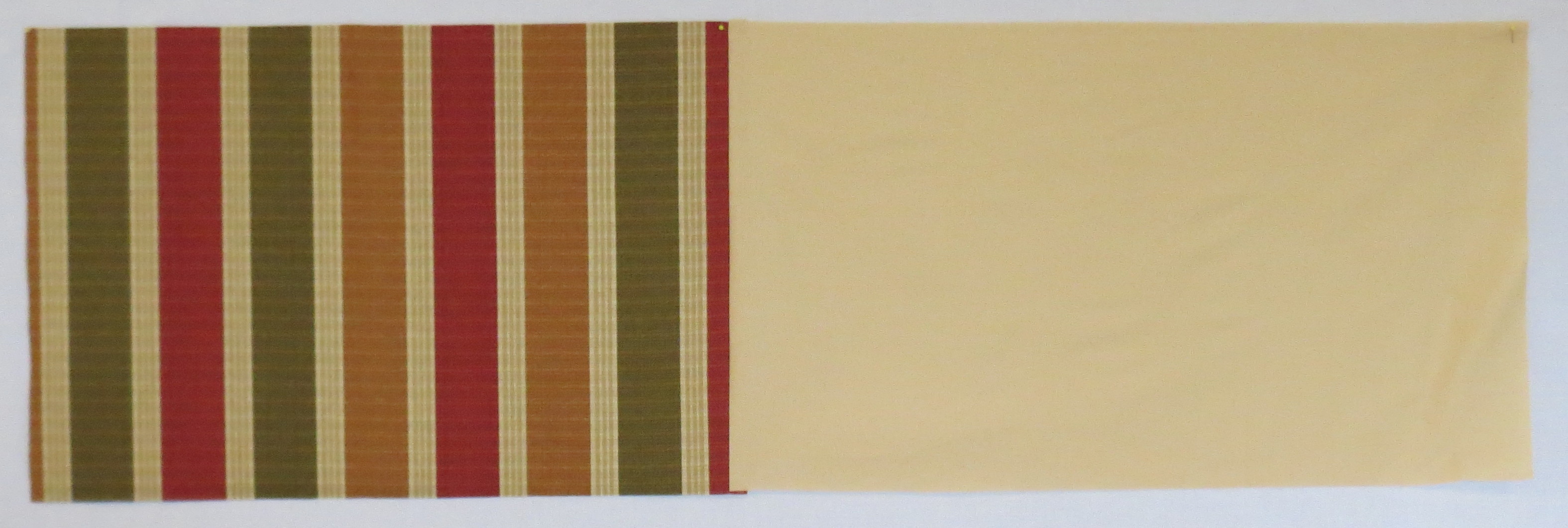 Sew the lining fabric to the outer fabric, right sides together end to end , with a ½ inch seam. This will look as shown below.