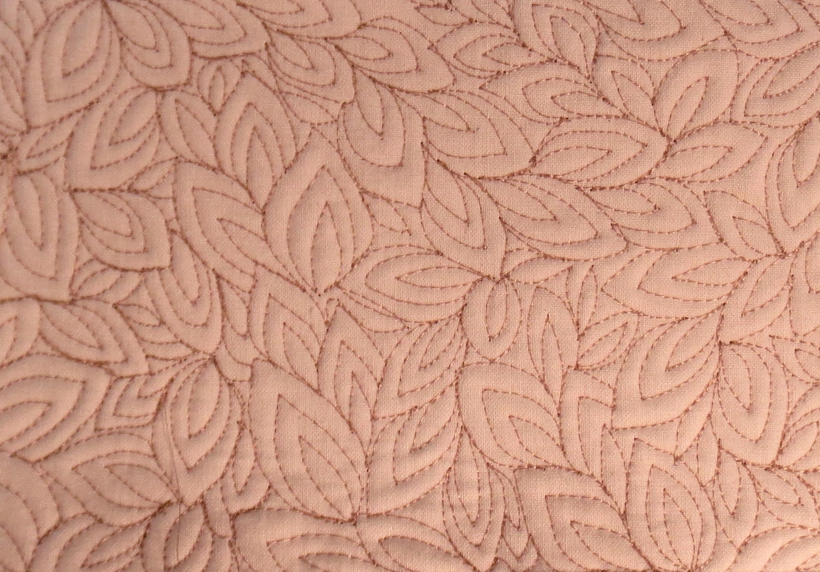 And below is an example of some decorative stitches I like for quilting. None of these stitches is very dense, so they are relatively fast to stitch and look good on the back of the quilt as well as the front. I particularly like the serpentine stitch (basically a wavy line), a simple feather stitch, and a simple leaf stitch. You may need to adjust the stitch width and length before they make an attractive quilting stitch. Be careful to check your tension on a scrap piece before stitching; sometimes the default tension on a decorative stitch is set loose so the top thread will go to the back and no bobbin thread will show on the top. Since we will be seeing the quilting stitches on the back as well, we need to balance the tension, especially if the top and bobbin threads are different colors.