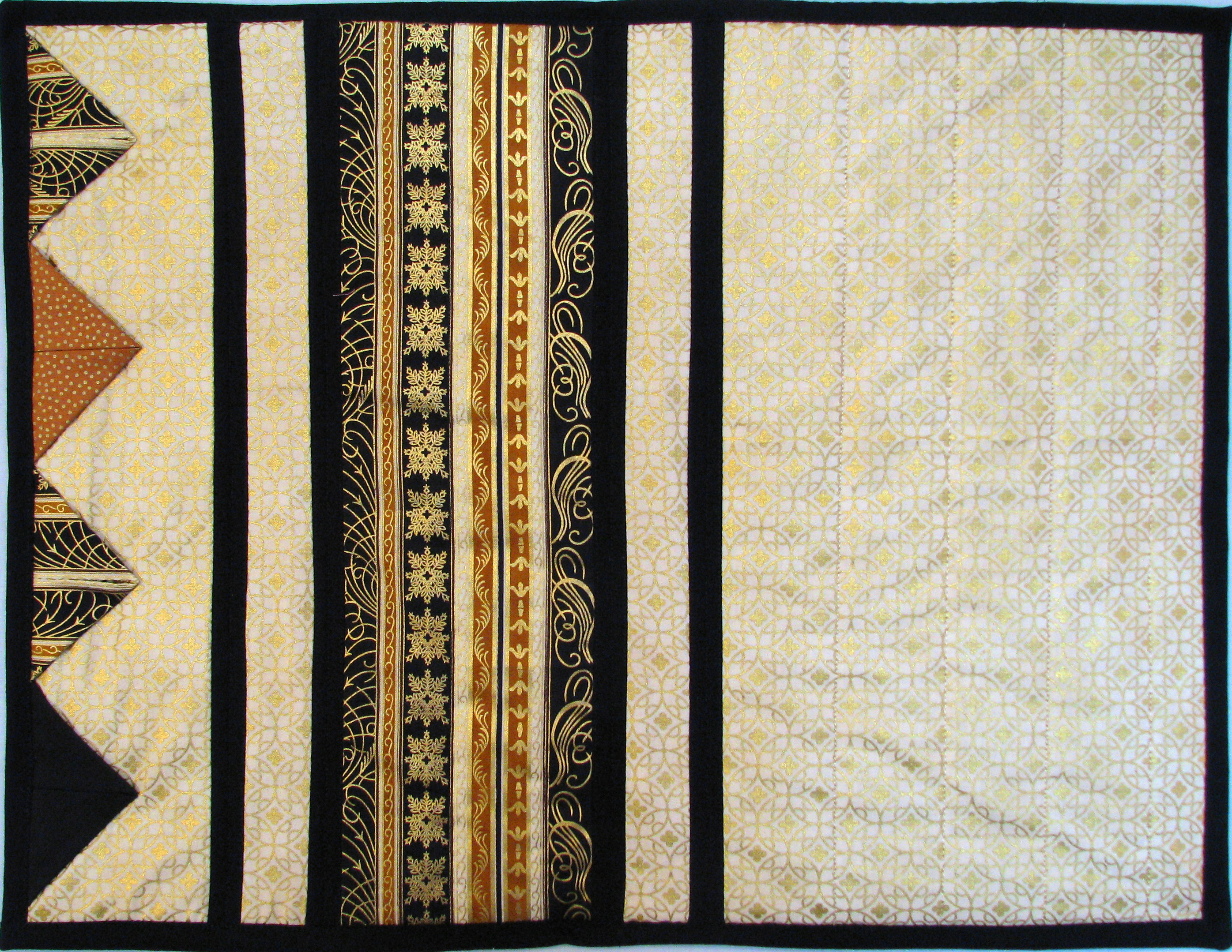 The Points of Elegance pattern is seven patterns in one: a fireplace mantle runner in three sizes, a tablerunner in three sizes, and a placemat. All patterns feature beautiful prairie points.